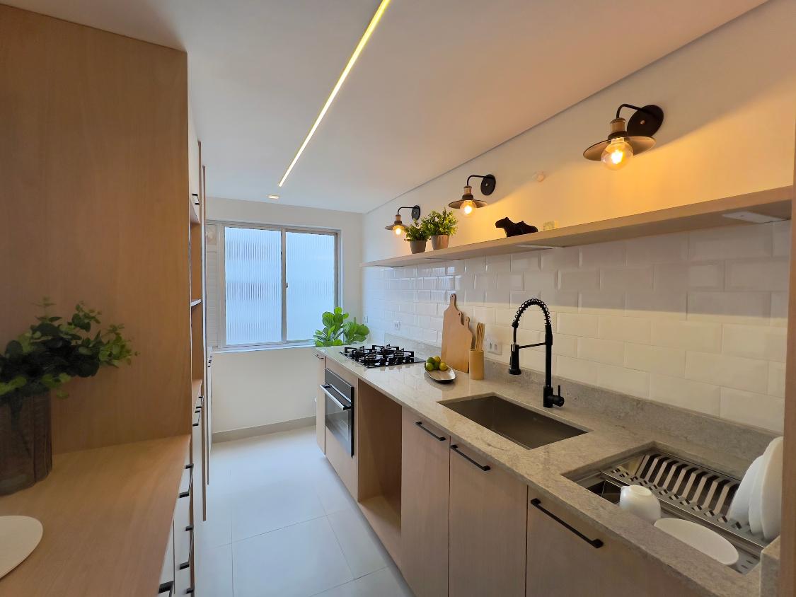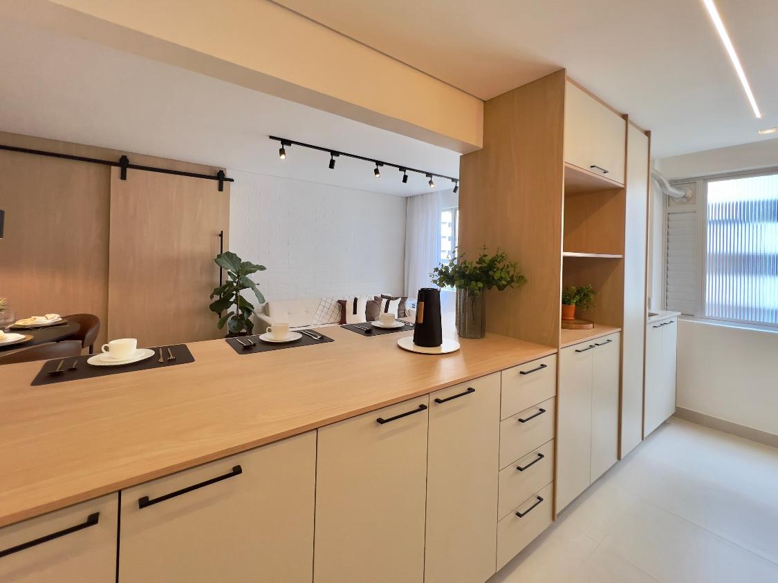 - Forro de drywall na cozinha e sala de jantar, com iluminação embutida;